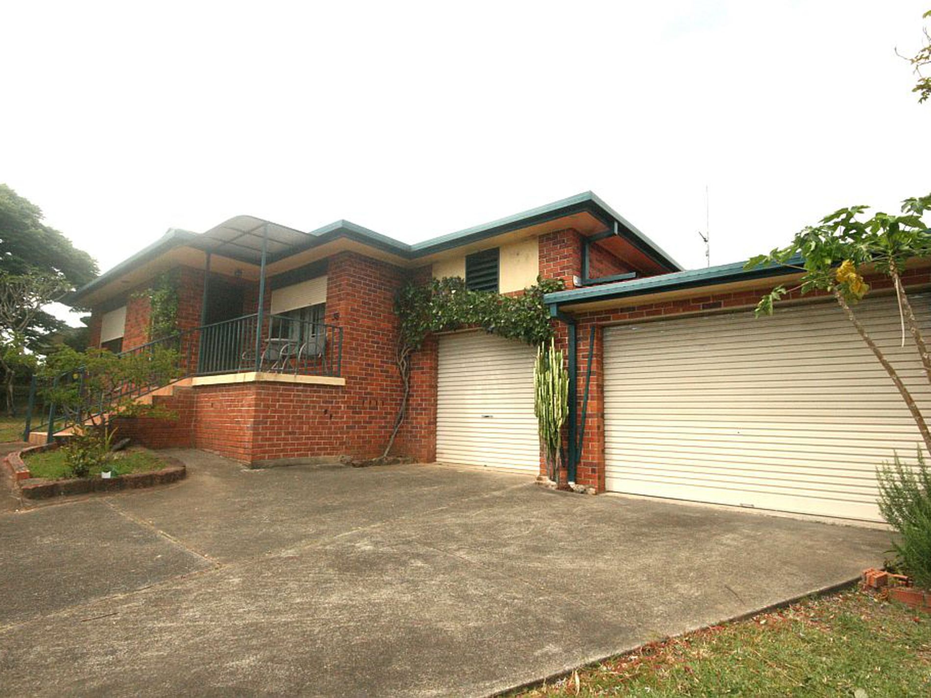 Situated on the top of the hill, looking north toward the treed covered hills. This elevated Boambee East home is larger than it looks, the upstairs has three bedrooms, separate lounge, semi separate dining, galley kitchen, front and rear covered balconies with view of the hills. There is also a central bathroom, separate toilet, ducted air conditioning through out with isolation switches for each bedroom, tiled traffic areas and quality roller shutter on the windows. Down stair is a rumpus, that has been divided into a non approved flat, with bedroom, lounge/dining, shower room/toilet & laundry. The yards are fenced, at the rear of is a covered BBQ area with brick pizza oven, two water tanks, chook shed, fruit trees and the rear yard had been gently sloped. There is solar hot water, accommodation for three cars with remote control power roller doors, under house storage and work area.